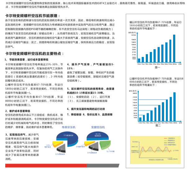 變頻空壓機和風機電機水泵節(jié)電一樣,根據負載變化,控制輸入的電壓頻率,其能保持壓力、流量、溫度等參數的穩(wěn)定,從而大大提高壓縮機的工作性能。